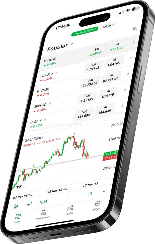 Mobil uygulamamızla alım satım deneyiminizi dönüştürün. İstediğiniz zaman istediğiniz yerde para yatırıp çekin ve işlem yapın.